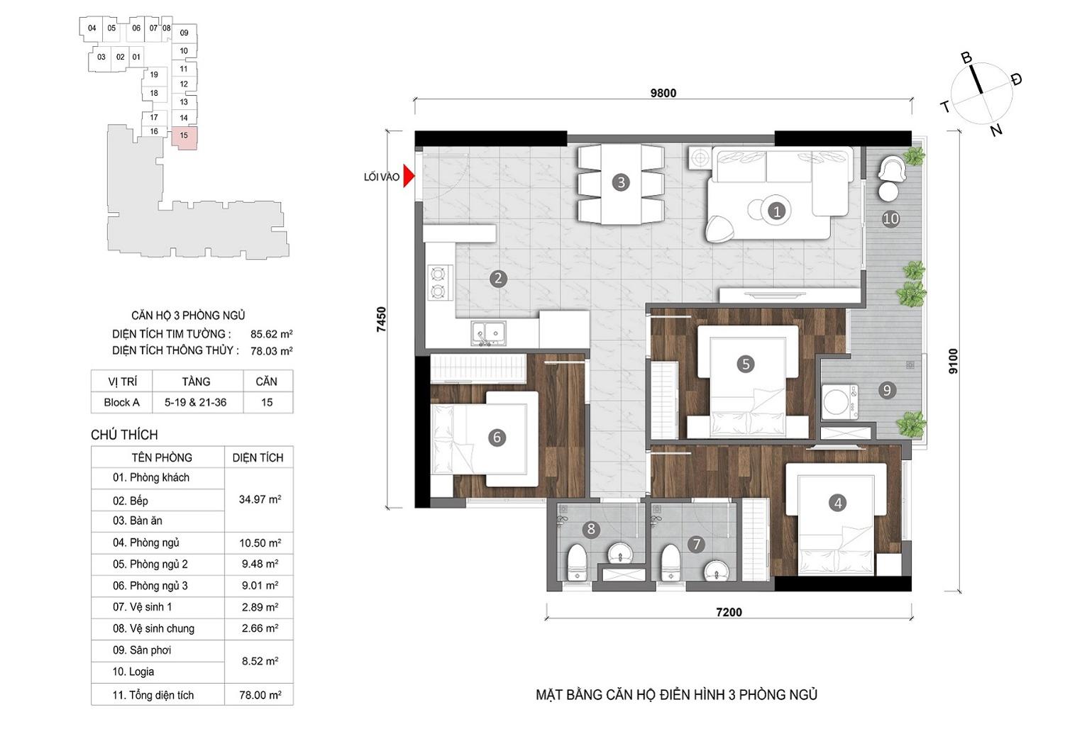 - Căn 2 phòng ngủ diện tích 60m² và căn 3 phòng ngủ diện tích 85m², phù hợp cho mục đích mua để ở hoặc kinh doanh cho thuê.